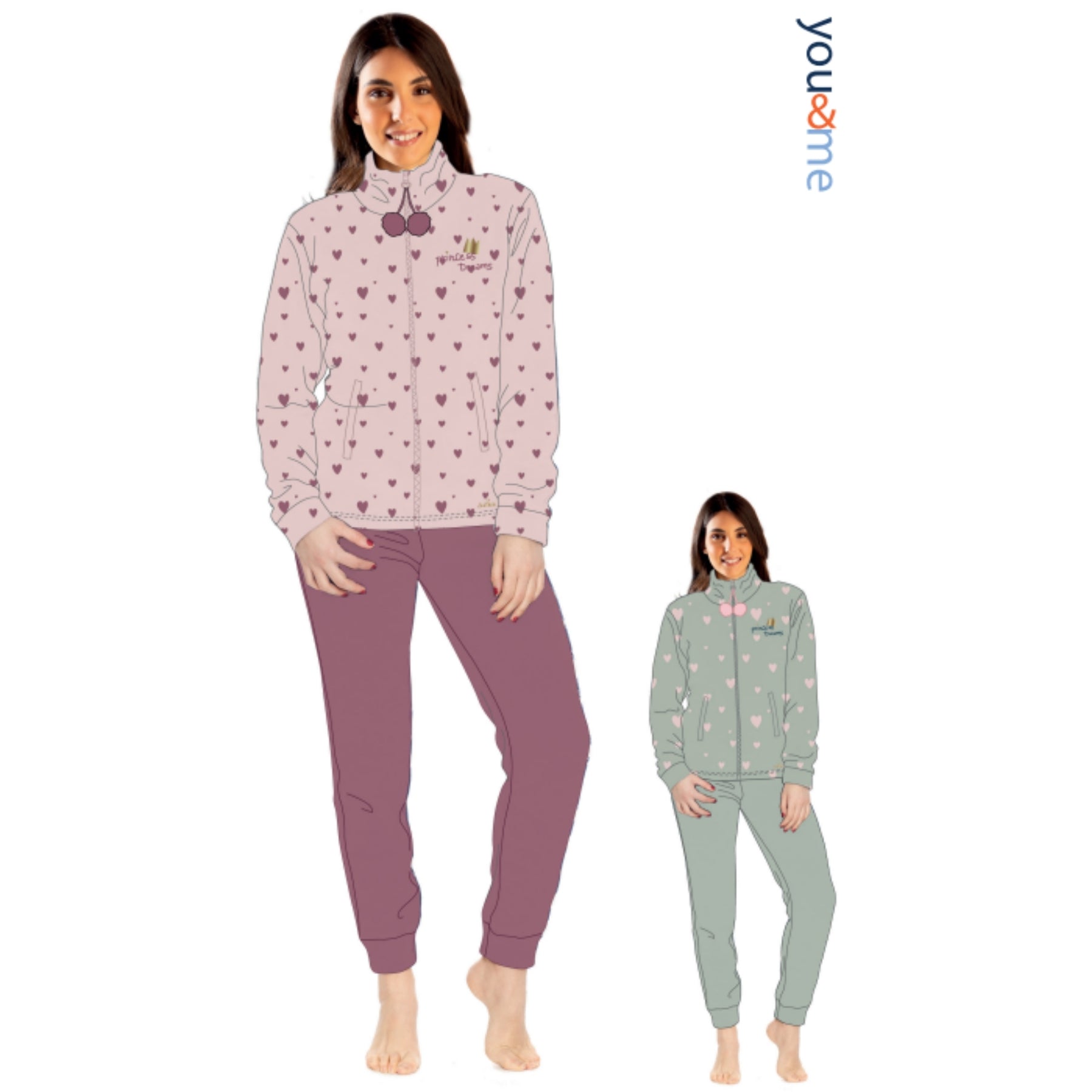 Ymc745 - You&me Donna Coral Pigiama Donna Full Zip Fantasia In Soffice Coral