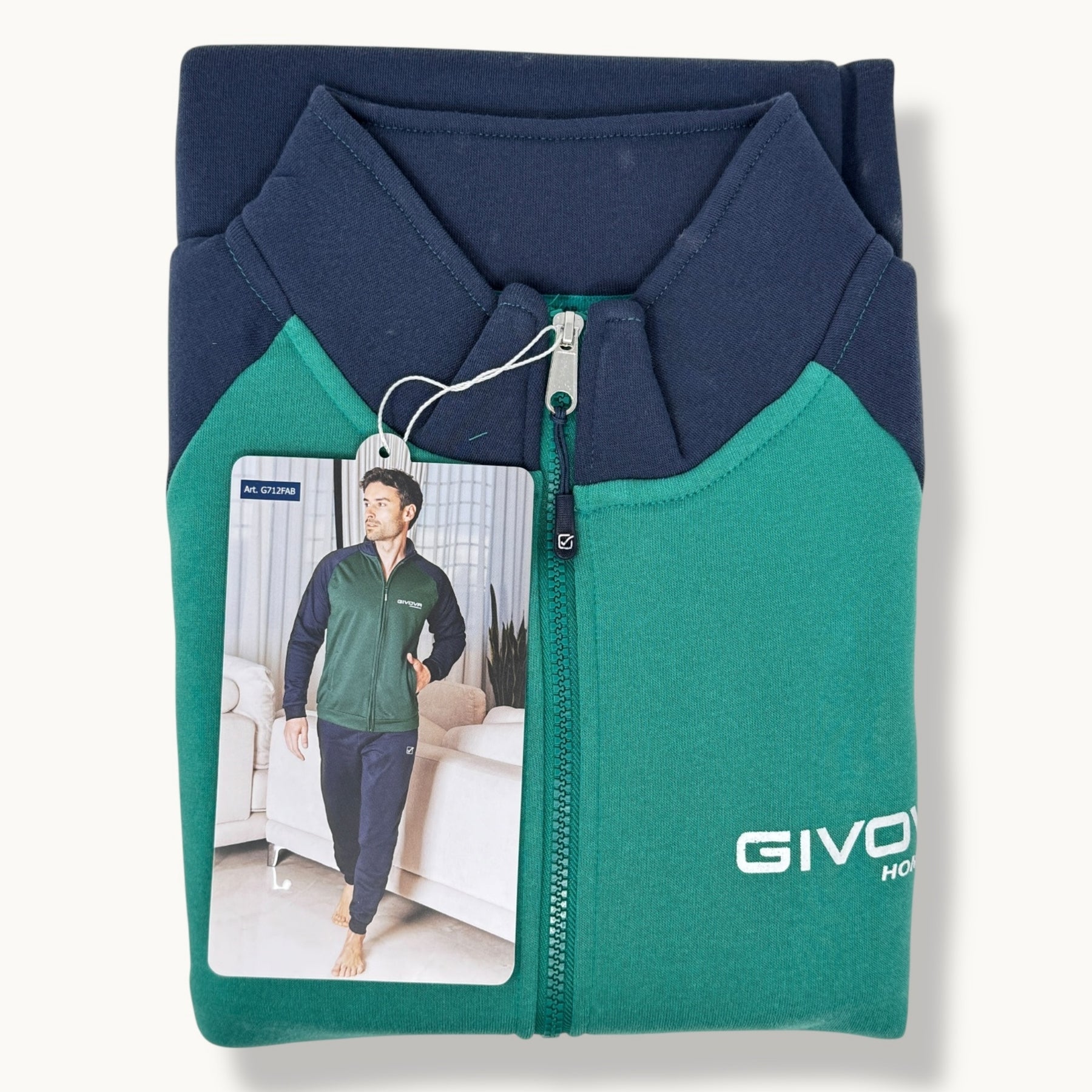 g712fab - Givova Fitness Uomo Tuta In Felpa Full Zip Bicolore Pantalone Con Tasche E Coulisse