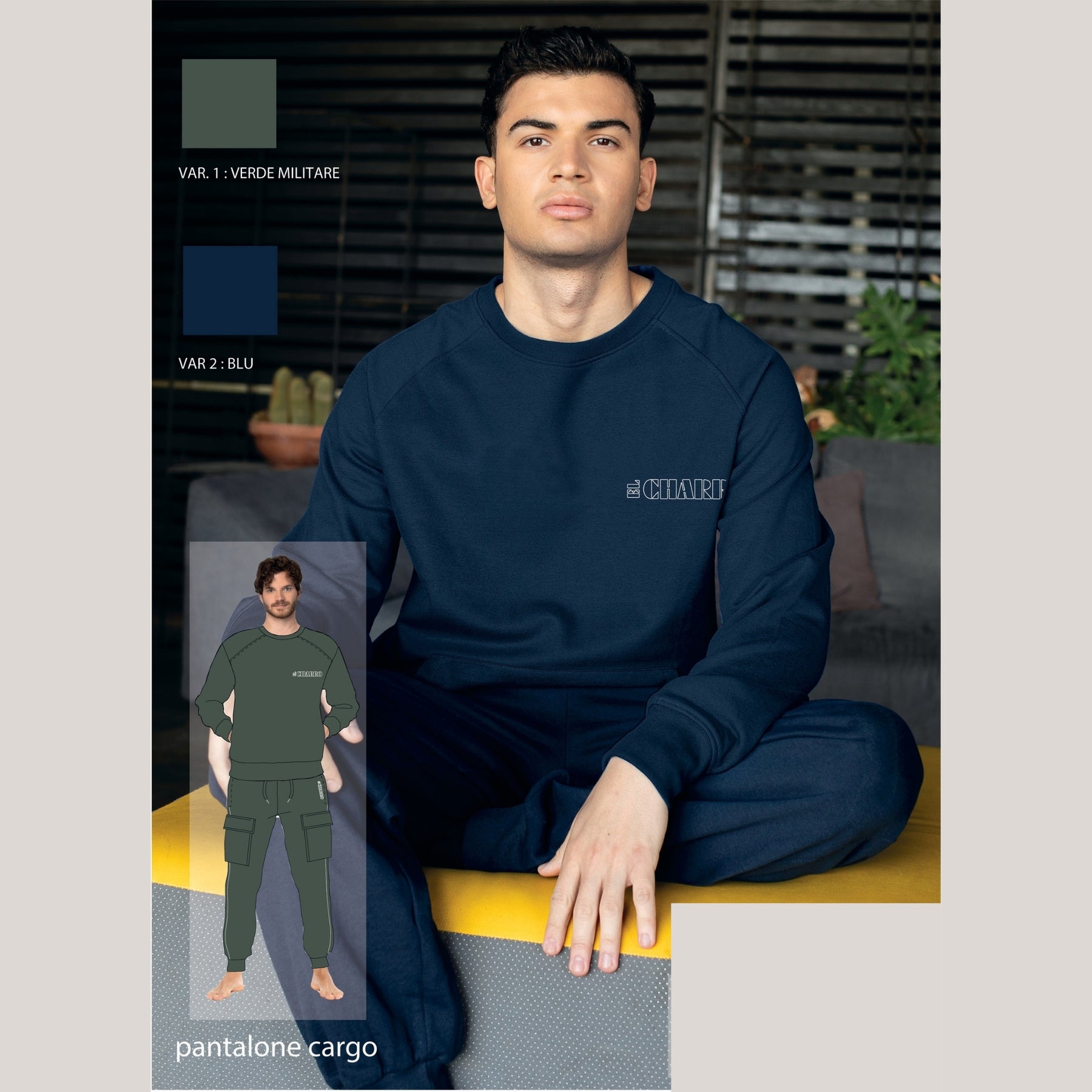 gcm215 - El Charro Fitness Tuta Uomo In Felpa Giro Collo Pantalone Con Tasche E Logo