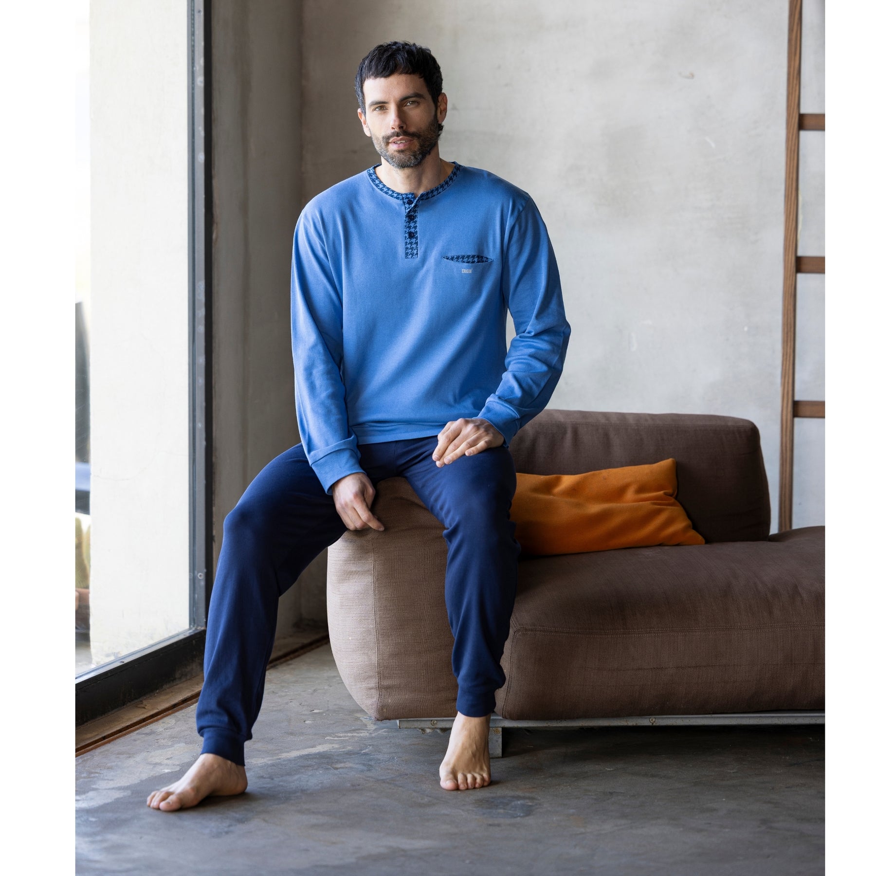 Mii2404 - Irge Inverno Uomo Pigiama Serafino 3 Bottoni In Caldo Cotone 100% Tinta Unita Con Taschino