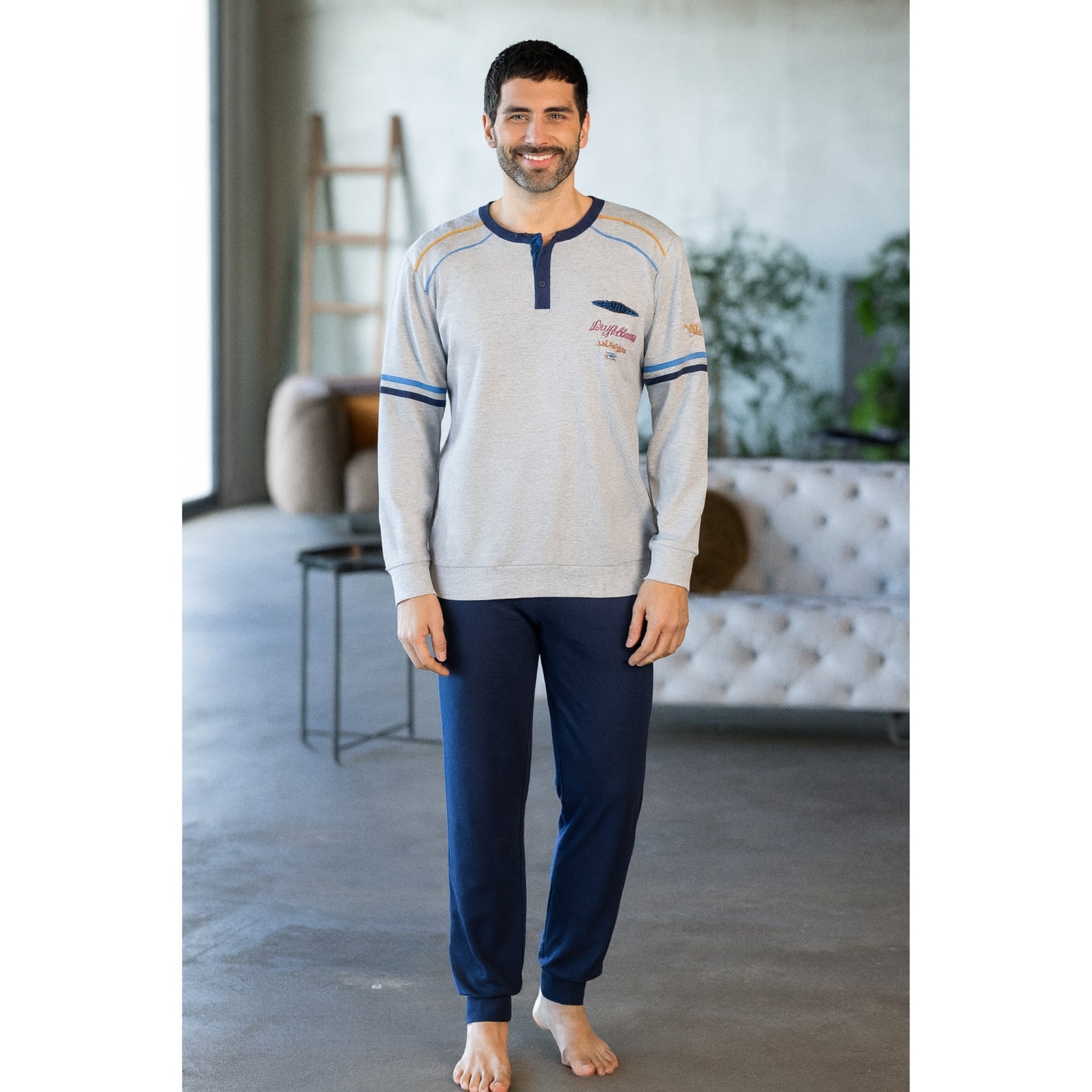 Mii2411 - Irge Inverno Uomo Pigiama Serafino 3 Bottoni In Caldo Cotone 100% Tinta Unita Con Taschino